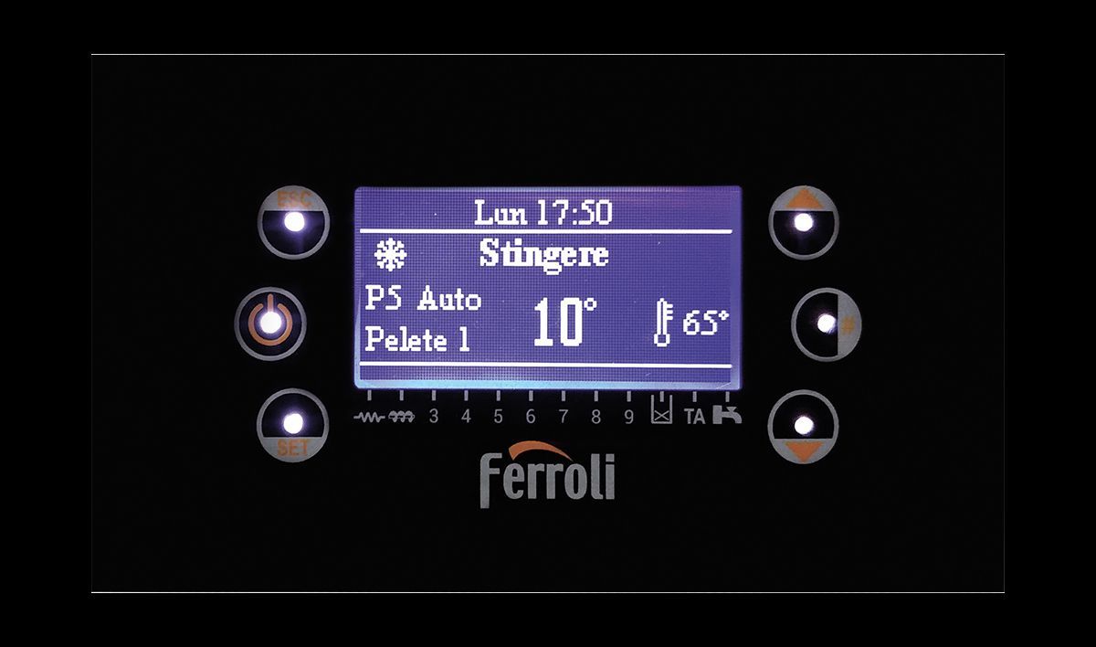 Controlul arderii este optimizat folosind un algoritm de modulare, care scade automat dozarea peleților și a aerului pe măsură ce cazanul se apropie de temperatura dorită.